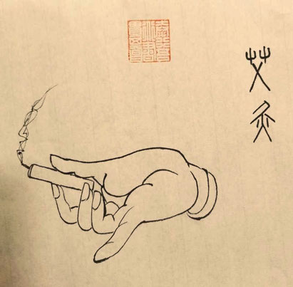 Die bei der Moxibustion abgebrannten Beifusszigarren kommen nicht in direkten Hautkontakt. Das Moxastäbchen wird entweder an einer Akupunktur-Nadel befestigt oder mit der Hand in die Nähe eines Energiepunktes auf dem Meridian gehalten.